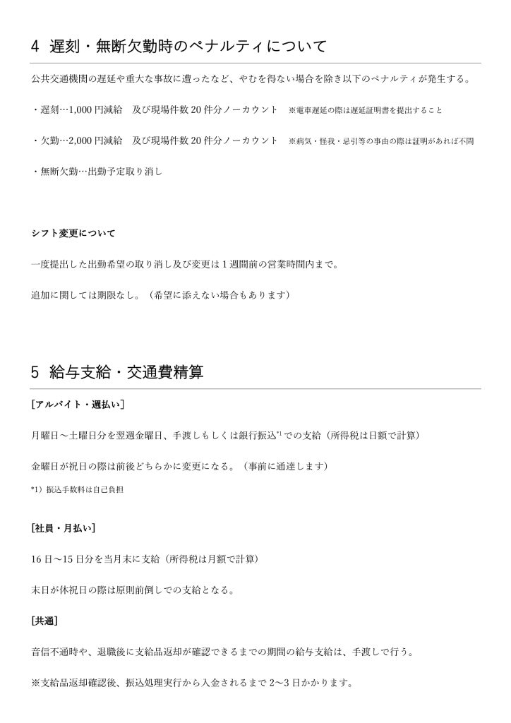 2025/12/18 項目2 支給品について追記しました。項目4 シフト変更の期限について追記しました。
